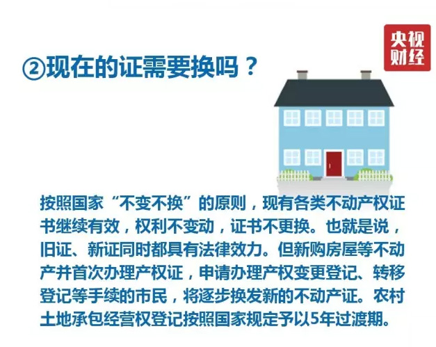 但就權(quán)利人的實質(zhì)影響而言,不動產(chǎn)登記證明只是房產(chǎn)證、國土證等不動產(chǎn)統(tǒng)一后的新證明,可以為入學(xué)、就醫(yī)、出國等作為證明和擔(dān)保。舊的房產(chǎn)證并非一定要換“新證”。不動產(chǎn)登記機構(gòu)堅持“不變不換”原則,權(quán)利不變動,簿證不更換,依法辦理變更、轉(zhuǎn)移等登記工作時,逐步更換為新的不動產(chǎn)登記簿證。